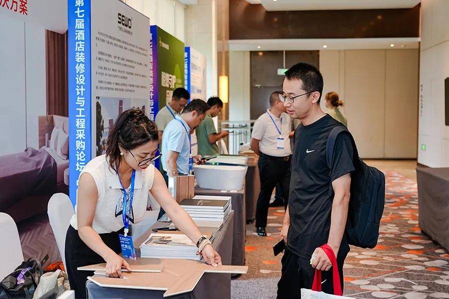 本届论坛创新打造"产业链精准对接平台",通过精心规划的商务洽谈专区,为酒店业主方、设计机构与优质供应商构建高效的价值链接,助力参会各方实现资源精准对接。活动现场互动频繁,与会嘉宾一对一围绕产品技术升级、空间设计创新及运营管理优化等核心议题展开了深度磋商。