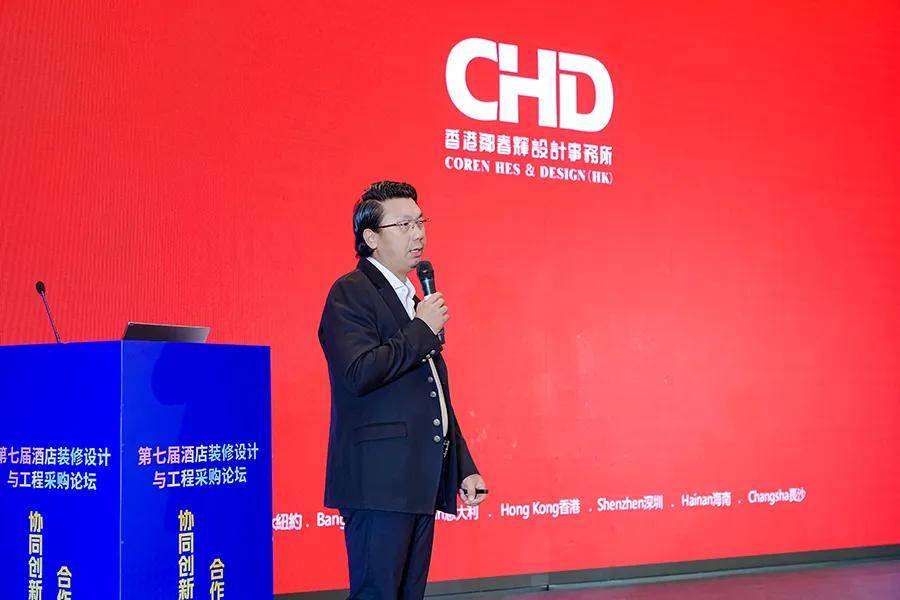 CHD香港邹春辉(国际)设计事务所创始人邹春辉发表了主题演讲《融合自然,互相古今——国际视野下的酒店叙事设计》