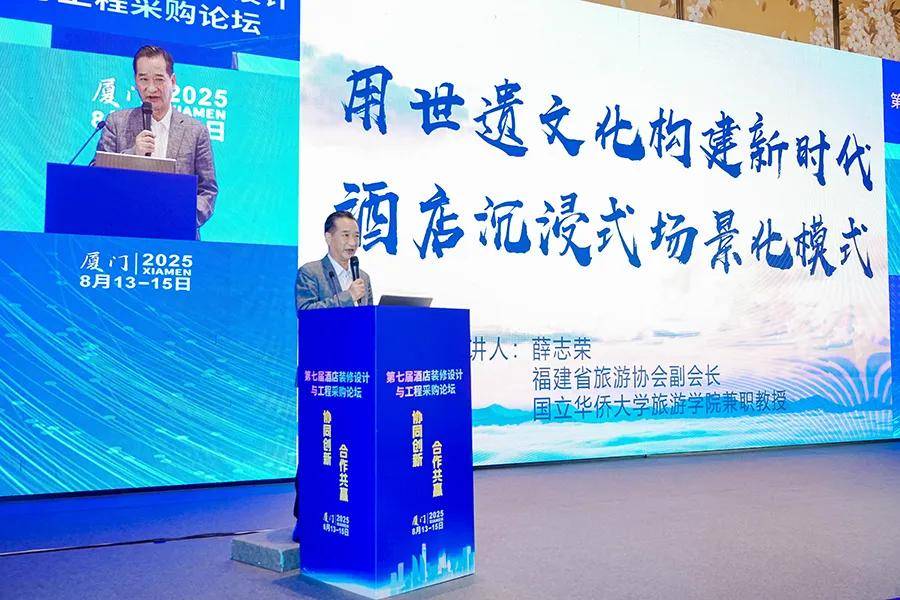 福建省旅游协会副会长、福建中旅饭店管理集团原总经理薛志荣发表了主题演讲《用世遗文化构建新时代酒店沉浸式场景化模式》
