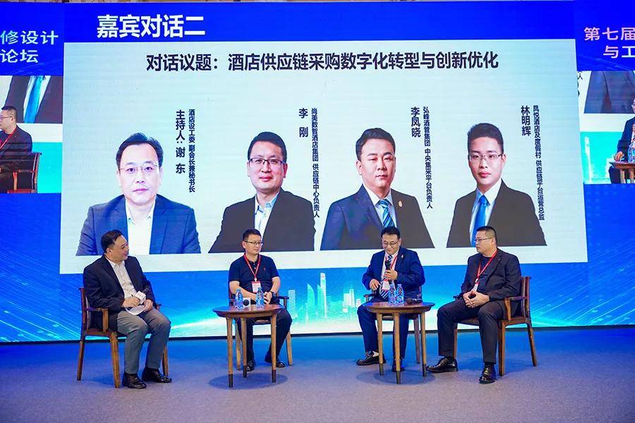 第二场对话《数字化转型驱动酒店供应链采购升级》由酒店设工委副会长副会长兼秘书长谢东主持,尚美数智酒店集团供应链中心负责人李刚,弘峰酒店管理集团中央集采平台负责人李凤晓,凤悦酒店及度假村供应链平台运营总监林明辉等供应链专家,围绕智能化采购平台建设、数据驱动决策等前沿议题进行深度交流。